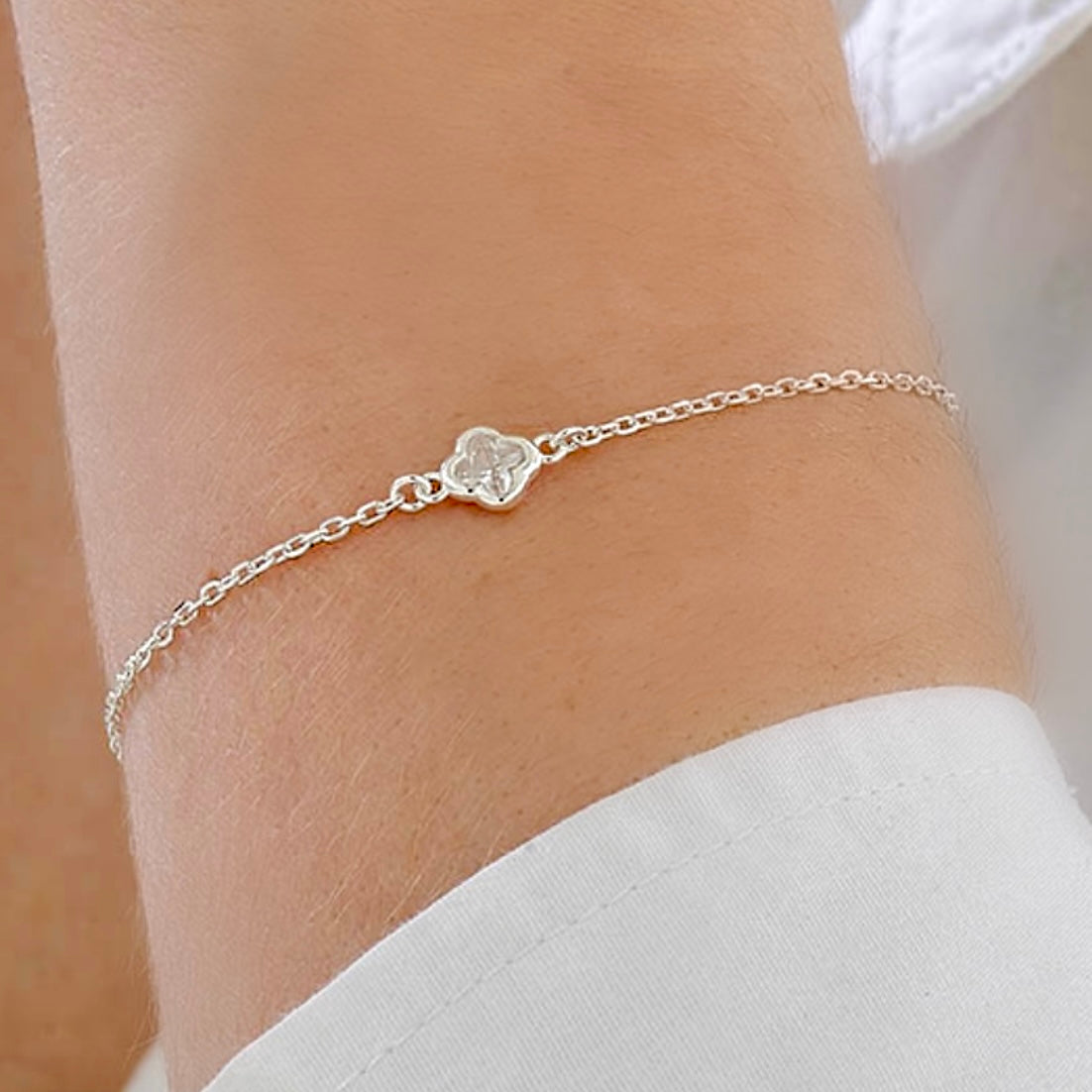 🤍Armband mit Kleeblatt & Zirkonia – Sterling Silber, verstellbar